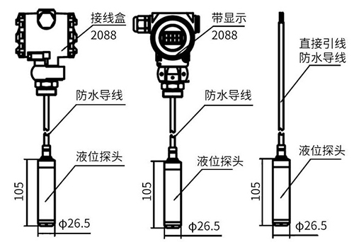 投入液位計是基于被測液體靜壓與液體高度成正比的原理,利用進口高純單晶硅傳感器或陶瓷傳感器的壓阻效應,將靜壓轉換為電信號。經過溫度補償和線性校正。轉換成4-20mADC標準電流信號輸出。輸入型液位變送器的傳感器部分可直接倒入液體中,變送器部分可用法蘭或支架固定,安裝使用極為方便。
