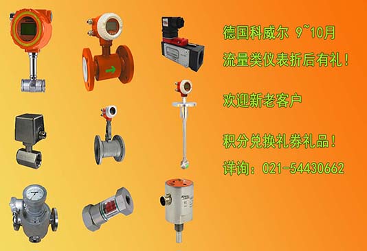 為了答謝新老客戶對德國科威爾的真誠厚愛,公司特在2014年9~10月舉行感恩回饋活動,凡是在此期間購買流量類儀表的客戶在享受超低折扣的基礎(chǔ)上還可積分兌換禮品禮券。超值驚喜等你來,時(shí)間有限,快快加入吧!詳情請咨詢TEL:021-54430662.