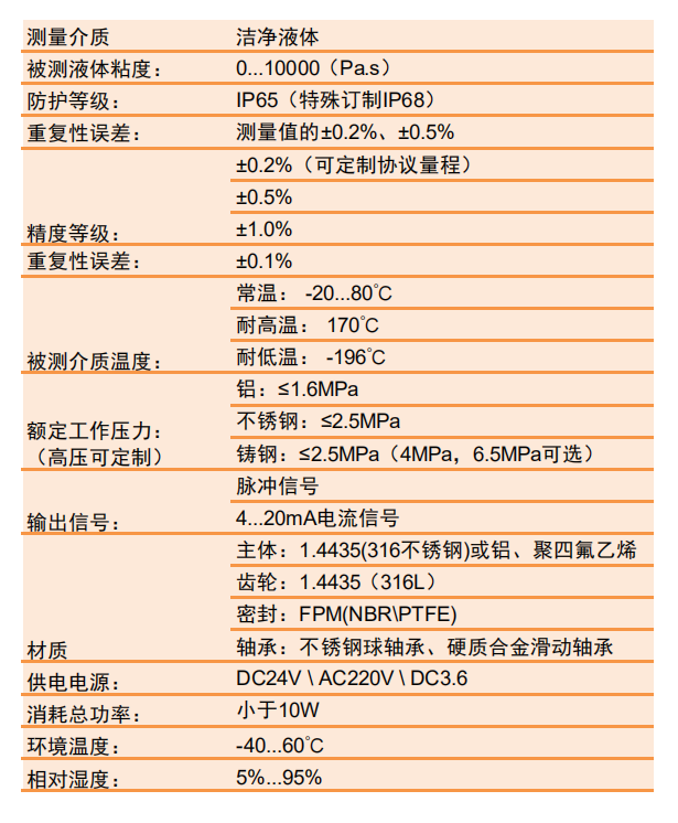 特點: 耐高壓;可測量各種粘性介質;高精度與高重復性;脈沖輸出/模擬量輸出可選;測量范圍相對廣泛。