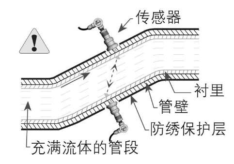 1. 選擇充滿流體的材質(zhì)均勻質(zhì)密、易于超聲波傳輸?shù)墓芏危绱怪惫芏危黧w向上流動(dòng))或水平管段。